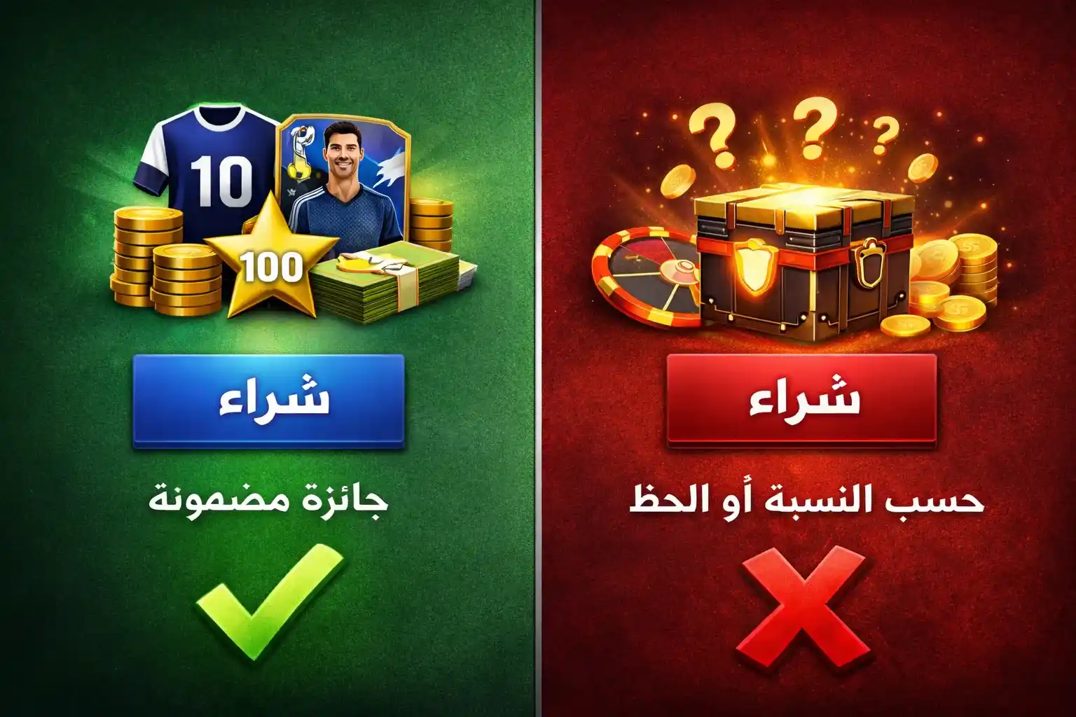 البكجات، والصناديق، أو العروض التي تعتمد على الحظ العشوائي أو النِّسَب المئوية، ويتم شراؤها بمالٍ حقيقي، وتكون نتيجتها غير معروفة قبل الفتح؛ تُعَدُّ من القمار المُحرَّم شرعًا، لذلك نوصي بتجنّب هذه الأقسام وعدم استخدامها.